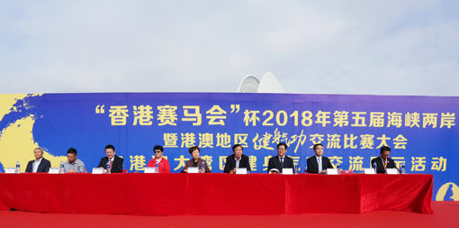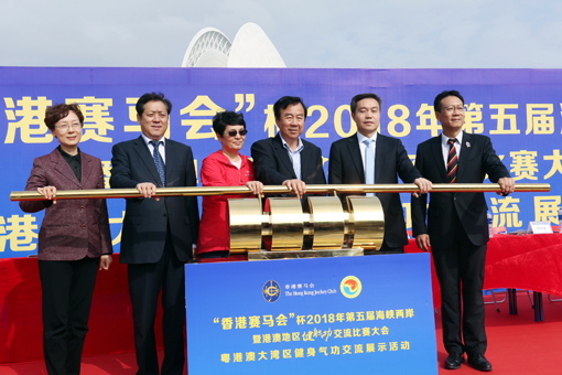 11月19日,“香港赛马会”杯2018年第五届海峡两岸暨港澳地区健身气功交流比赛大会、粤港澳大湾区健身气功交流展示活动在广东省珠海市拉开帷幕。此次大会是由香港赛马会捐助,中国健身气功协会主办,珠海市体育局协办,珠海市体育总会承办??皇缴希姨逵芫纸∩砥芾碇行母敝魅涡烈视胫楹J形幕逵糜尉指本殖ぺ蛎飨群笾麓?。国家体育总局原局长袁伟民、中国健身气功协会主席常建平、国家体育总局健身气功管理中心副主任辛沂、广东省体育局副局长麦良、香港赛马会国内体育项目主任顾问任军、珠海市文化体育旅游局副局长邬向明等共同启动开幕。国家体育总局健身气功管理中心国内发展部主任张征,珠海市台办副主任、市台湾事务局副局长杜小平,珠海市港澳事务局副局长魏光等出席开幕式。