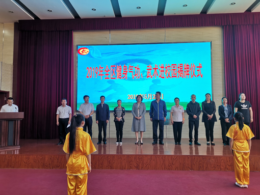 5月28日上午,2019年内蒙古自治区健身气功、武术进校园揭牌仪式在呼和浩特市新桥小学举行,标志着该校正式成为“健身气功、武术进校园示范校”,也是呼和浩特市首个获此殊荣的学校。自治区社会体育服务中心、内蒙古健身气功协会、呼和浩特市教育局、呼和浩特市教学研究室、新桥小学等有关领导出席揭牌仪式。