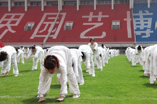 最后,谈一谈心肾相济的平衡状态。该式中有一个核心动作,就是双手攀脚。这实际上是中医养生理论中的一个很重要的方法:心肾相交法。因为手心有劳宫穴,劳宫穴是心包经上的重要穴位;而脚心有涌泉穴,涌泉穴是肾经出发的地方。所以,手心和脚心相合,导引心肾相交而致身心平衡。人的生命保持平衡状态,是指在正常生理情况下体内环境的理化性质只在很小的范围内发生变动。这种内环境的相对稳定状态,其实就是人体运动的平衡态,这种平衡态是相对稳定的,人体生命动态平衡一旦失去,人体生命活动就会异常而产生疾病。